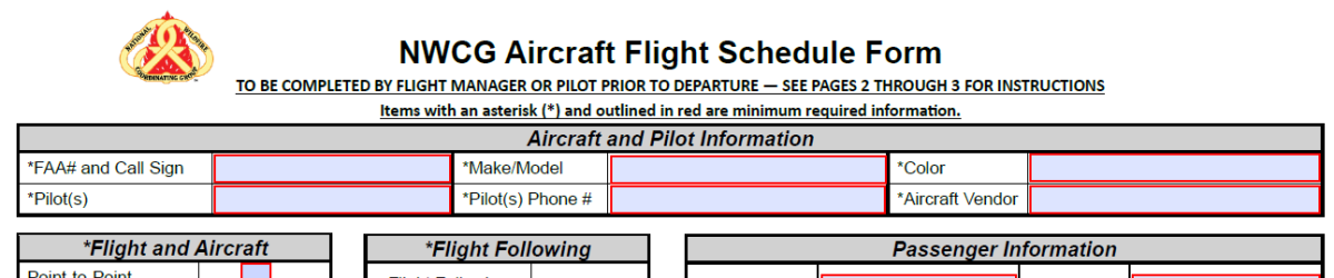NWCG Aircraft Flight Schedule Form, PMS 249