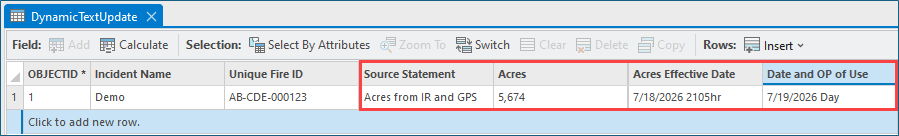 After each round of edits is complete, best practice is to update the DynamicTextUpdate table in the other_incident_data.gdb with the following information: