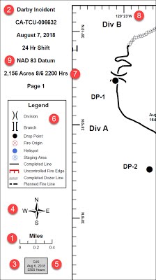 • Source statement (7): Date and time that key map elements (e.g., fire perimeter) were collected. Other citations for data and/or features on a map may be included, such as source, collection method, accuracy, and coordinate system/projection.